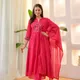 Fuchsia Garden Threadwork A Line Mul Cotton Suit